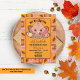 Happy Thanksgiving! With turkey day soon approaching, what better way to bring all of your family and friends together than with this cute turkey invitation. Whether you are planning a Friendsgiving party or a traditional Thanksgiving celebration, you can invite your loved ones with style. This invitation can be customized and personalized to fit your event details. Warm fall autumn vibes radiate from this design with fall leaves, pumpkins, arrows, feathers, and a cute, smiling turkey in hues of orange, brown, yellow, and pink. The catch phrase is welcoming and inviting too: "We're stuffed with gratitude, but we saved room for you.".