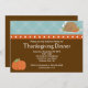 Start your thanksgiving day dinner off right with our traditional turkey and pumpkin thanksgiving day invitation set on a trendy blue and brown background. ©JW Illustrations