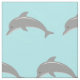 Turquoise blue and Grey dolphin pattern fabric DIY textile. Cute sea animal design print for baby shower and kids accessories. Custom colour background behind grey fish illustration. Make your own childrens clothes and decorations. Gender neutral icon for boys and girls.