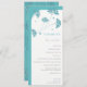 Wedding Program with cute turquoise watercolor twigs with small flowers with silver contours, elegant floral twigs of soft teal flowers, spring or summer pastel coloured floral design, a romantic light green bouquet of wildflowers. Botanical watercolor. Cute flower botany Wedding Program. Cute Turquoise Flowers Collection.