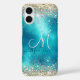 Cute turquoise gold faux glitter monogram Case-Mat Case-Mate iPhone Case