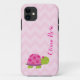Cute IPhone case Turtle with pink flowers and chevron zigzag pattern