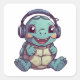 Cute Turtle Wearing Headphones Adorable Animal Square Sticker