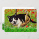 This blank on backside card is all you need for a quick note or for a thank you. I designed this card from a cutout photograph of a rescued tuxedo cat named Charlie. This cute cat has a moustache and is so cute in a woven baske. I like to keep cards like this on-hand for a note to neighobrs or coworkes. This care would be loved by anyone who likes to cats.