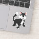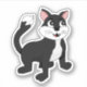 Custom cut vinyl sticker with an illustration of a cute happy black and white kitten, cute gift for children with cartoon cat,
