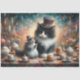 Cute Tuxedo Cat and Mouse Fantasy Decoupage. Tissue Paper