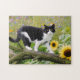 Cute tuxedo cat on a tree branch with sunflowers jigsaw puzzle