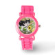 A cute cat, tuxedo pattern black and white bicolor, European Shorthair, walking on a tree branch in a garden with flowering sunflowers. Cats have an exceptional sense of balance and they achieve a graceful balance. Photo taken by Katho Menden. This watch is a gift idea for cat lovers.