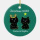 Cute Two Cat Christmas Lights Custom Names Green Ceramic Ornament