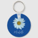 Monogram botanical keychain with a white daisy and a dark blue background. With white typography script, you can personalize with your own name. A lovely accessory or your keys or a lovely gift for someone special.