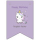 Drapeaux de Bunting d'Anniversaire violet avec une Unicorne mignonne et pois en style dessin animé. Changez le texte d'une fête personnalisée comme pique-nique de pays, fête de réveil, retraite, etc.