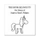 Cute unicorn ex libris with the customizable texts "This Book Belongs to" + "the library of" + the name "Joanna Sarah Adams." A custom bookplate rubber stamp -- personalized book stamp -- easy to personalize with the name of the book owner. You can also change the other texts if you need to, for instance if you intend to apply this custom book stamp on notebooks and want it to read it so.