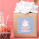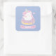 Un autocollant personnalisé qui présente une licorne blanche à la crinière rose au milieu d'un beignet délicieux avec beaucoup de givre violet et des arcs-en-ciel arrosés dessus. Étoiles et coeurs motif arrière - plan. Illustration fantaisiste et kawaii pour les filles qui aiment les licornes et les desserts sucrés !