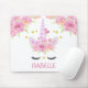 Beautiful Mouse Pad featuring a cute Unicorn face with lovely pink watercolor florals and faux glitter tiny little hearts. A lovely pink text name which you can change from the Personalize menu.