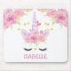 Cute Unicorn Face Pink Flowers Gold Hearts Mouse Pad