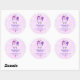 Business stickers with a whimsical drawing of a cool and funky pink cubby unicorn which has a purple mane and tail. This cute creature is wearing heart-shaped sunglasses and is decorated with little stars.