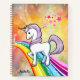 Cute Unicorn On A Rainbow Add Name Notebook