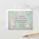 Une douce licorne de bébé s'assoit et regarde un papillon sur son nez. Jolies invitations carte postale dans les tons rose et vert pâle pour invitation vos invités à la fête d’anniversaire de votre petit. Customisez facilement le texte à l'avant et à l'arrière.