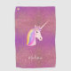 Cute Unicorn Pink Faux Glitter Personalized Golf Towel