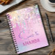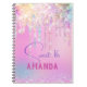 Make back to school fun with this Cute personalised Notebook. It is designed with elegant girly iridescent glitter drips in unicorn rainbow pink.