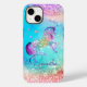 Cute unicorn pink Glitter rainbow aqua monogram Case-Mate iPhone Case