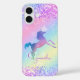 Cute unicorn girly pink Glitter rainbow monogram iphone case cover. This iPhone case features an enchanting unicorn-inspired design with pastel faux glitter in shades of lavender, pink, and aqua. The iridescent sparkle effect adds a magical, girly touch, creating a whimsical look that’s perfect for anyone who loves unicorns and dreamy colours. It makes the perfect gift idea for a sweet 16 birthday, wedding, bridal shower, anniversaries, baby showers or bachelorette parties, valentines day, Christmas or as a gift in general.