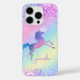 Cute unicorn girly pink Glitter rainbow monogram iphone case cover. This iPhone case features an enchanting unicorn-inspired design with pastel faux glitter in shades of lavender, pink, and aqua. The iridescent sparkle effect adds a magical, girly touch, creating a whimsical look that’s perfect for anyone who loves unicorns and dreamy colours. It makes the perfect gift idea for a sweet 16 birthday, wedding, bridal shower, anniversaries, baby showers or bachelorette parties, valentines day, Christmas or as a gift in general.