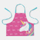 This custom unicorn kids apron makes a great personalized gift for a girl. Design features a colorful unicorn illustration and modern script font.
