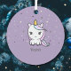 A Purple Christmas Ornament with a cute unicorn in pastel color, a customizable forename, a polka dots background and another unicorn on the back. Perfect for your Xmas decoration!