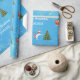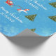 Elegant, minimalist Christmas wrapping paper with a unicorn pulling Santa's sleigh toward a Xmas tree decorated with silver baubles. The unicorn has a red and golden mane and tail and the sleigh carries Santa along with many presents. The wrapping paper also includes the greeting "Merry Christmas" and the name Joanne. Remember to personalize the name! You can also change the greeting to "Happy Holidays" if you wish. On a blue background with snowflakes.