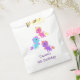 Sweet girl's birthday party favour bags, with graphics of cute colourful cartoon unicorns. Personalize the purple text for your daughter's special day. Matching cake pops, invitations, plates and napkins are available.