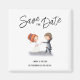 Cute and unique save the date wedding magnet with an illustration of a girl and a boy dancing. Illustrated and designed by Patricia Alvarez.