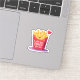 A cute and colorful cartoon illustration of a red French fries carton with a happy kawaii smiling face. The design features a floating red heart and the romantic funny pun quote "I only have FRIES for you". The image has a white sticker border, making it perfect for Valentine's Day greeting cards, fast food lovers, and humorous romantic gifts. Isolated design.