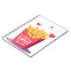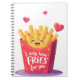A cute and colorful cartoon illustration of a red French fries carton with a happy kawaii smiling face. The design features a floating red heart and the romantic funny pun quote "I only have FRIES for you". The image has a white sticker border, making it perfect for Valentine's Day greeting cards, fast food lovers, and humorous romantic gifts. Isolated design.