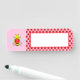 This awesome name tag can be erased and re-written so you can use it over and over again. The design features a cute little Valentines Bee. The Bee has a furry yellow body with black stripes and red antennae. It is holding on to a red heart shaped piece of honeycomb and is surrounded with sunflowers. Each flower has red petals to match the romantic bee and a black centre. There is white text in the middle of the honeycomb that says the romantic message "Bee mine". This little bee is ideal for showing your love for someone special.