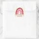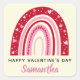 Cute Valentines sticker features rainbow in red and pink decorated in hearts on yellow sticker. Perfect for your child's school Valentines or favour seal.