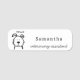 This name tag features your name in a black serif font paired with a charcoal grey script-style title for a warm, friendly feel. Combined with a cute dog illustration and welcoming “hello" (editable) this badge creates an inviting first impression for clients and their pets.