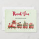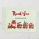 Flat thank You card with a cute and adorable image made with watercolors. Santa driving a train filled with toys for all the children of the world.