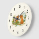 Cute Vintage Foxes Retro Christmas Scene Large Clock