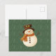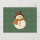 Cute, vintage green rustic snowman holiday postcard
