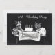 Cute, personalized custom 17th Birthday invitations for teenage girls. Whimsical, funny, black and white antique photograph of two / 2 cute, adorable kittens dressed in party clothes sitting at a table covered with a white and black table cloth with a white birthday cake with candles on a plain black background. This is a quirky vintage photography of two cats waiting to eat their cake, a perfect birthday invitation for all cat lovers. These are fun, original, unique, invitations for your Seventeenth / 17th birthday party celebrations and are fully personalizable and are printed/decorated on both sides / double sided printing / printed on two sides. If you need any assistance in customizing your product please contact me through my store and I will be happy to help. Pearl mat by ©Hazel Kinvig-Paul www.design-a-dream.co.uk.