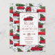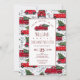 Invite your family and friends to your Christmas celebration with this invitation featuring cute vintage red trucks and cars with Christmas trees in colours of red, green, black, light blue and white with the word "merry" repeated throughout the design. The modern typography in deep red on white is in a fully customizable template, formatted to easily add all your details such as your name, occasion, venue address, day, date, time, and RSVP details. Designed by © Tim Coffey.