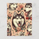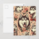 Cute Vintage Siberian Husky Illustration Postcard