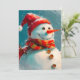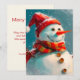 Not much is cuter than our whimsical merry snowman for a vintage watercolor Christmas card. He's got Santa's hat, a great retro scarf, and of course a carrot nose. Happy is he, with his buttons and stick arms. On the reverse of this flat card is the traditional greeting, "Merry Christmas", an example paragraph, and example name and year. All the nice red text can be edited. Be sure to edit the name and year.