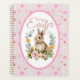 Delight in springtime sweetness with this adorable watercolor bunny nestled in a lush floral wreath — featuring soft peach peonies, yellow ranunculus, sage greenery, and delicate succulents. The central illustration is framed by a gentle pink rounded border, all set against a charming repeat background of tiny carrots, bunnies, and the words “Hi”, “Love”,Cute”, “Rabbit” in playful script on textured pink paper.