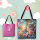Cute Watercolor Cat Floral Fantasy Personalized Tote Bag