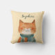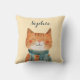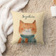 Cute Watercolor Cat Illustration Nursery Name Throw Pillow