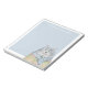 A personalized name writing notepad featuring an adorable illustration of a grey cat wearing a winter sweater while holding a fish. Add your name to the name template to make a cute personalized gift.