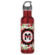 A watercolor ai illustration pattern of shiny red cherries, sage green foliage personalized water bottle.