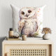 Elegant Watercolor Cute Owl Woodland Throw Pillow